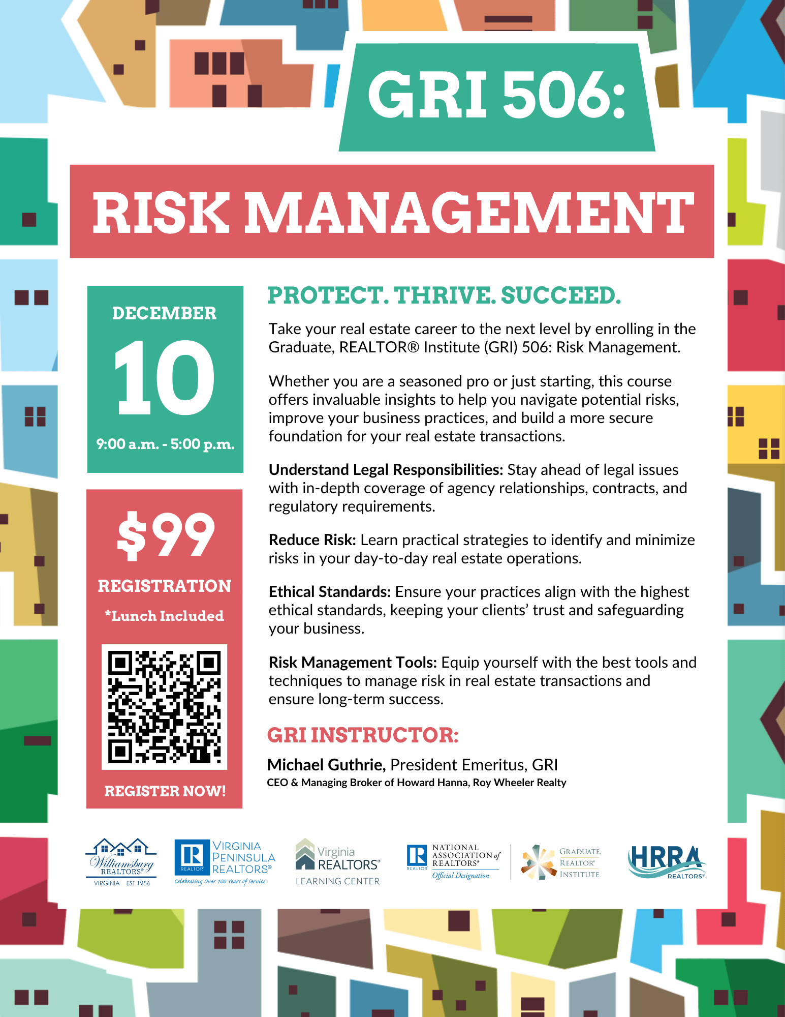 Take your real estate career to the next level by enrolling in the Graduate, REALTOR® Institute (GRI) 506: Risk Management.