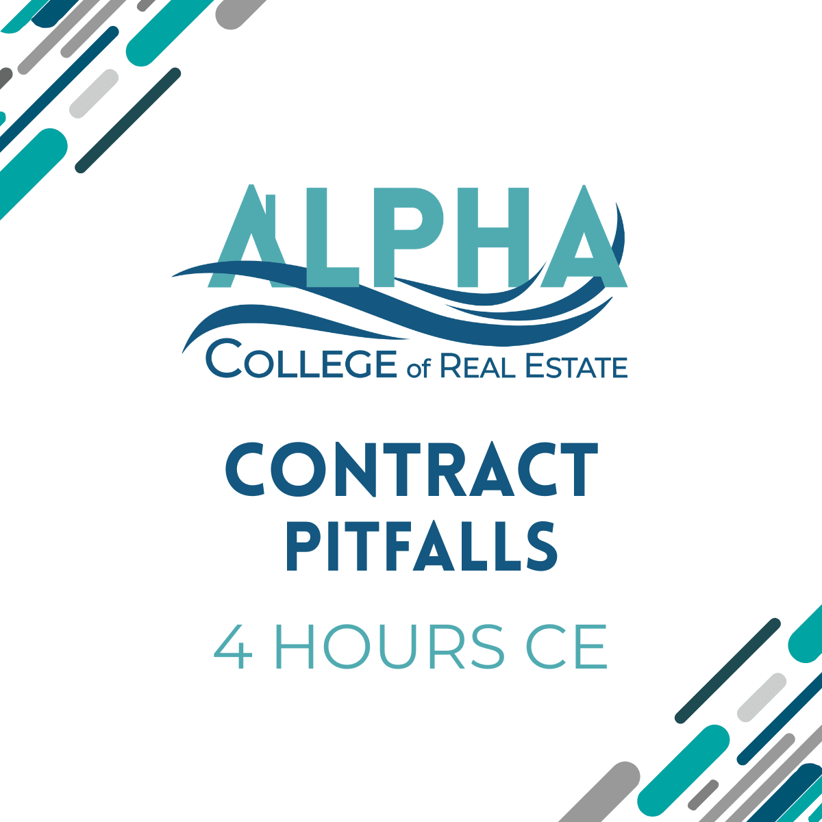 The days of the one-page contract are long gone. This course will identify areas in a contract that bring about the most controversy between sellers, buyers, and agents. understanding these pitfalls will allow the licensee to better serve the public and increase their awareness of the terms of the contract. This course is authorized for 4 hours of CE Credit.