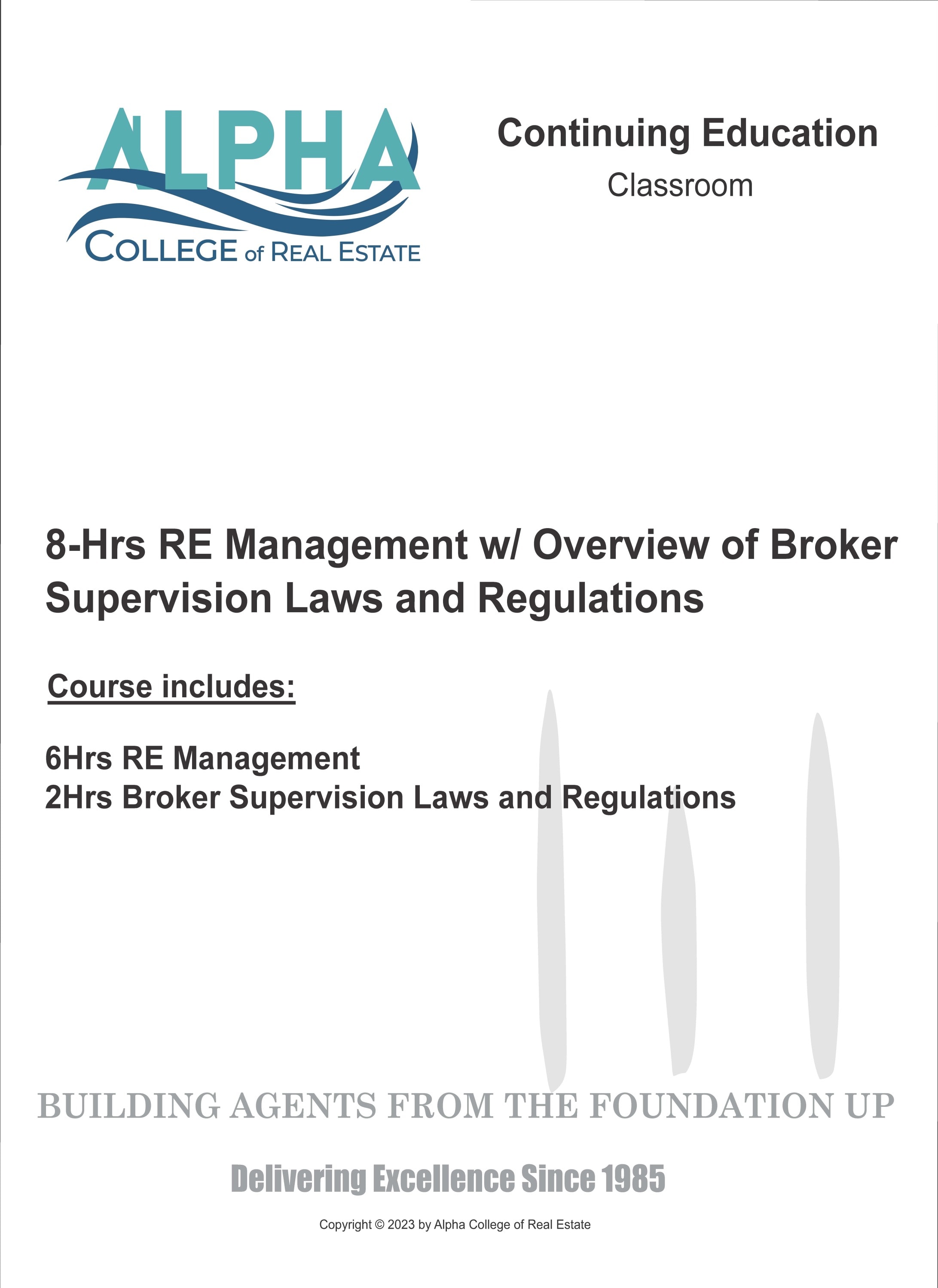 This course provides students with information regarding the legal practices of real estate firms. It will discuss important real estate laws and regulations and provided guidance for creating office policies and procedures. It will also review the NAR Code of Ethics. Topics covered will include Broker Supervision, Use of Unlicensed Assistants, Escrow Accounts/Financial Records, Business Policies, Advertising, Agency, Misrepresentation/Omission, Continued Education Requirements and Commissions. Upon completing the course, students will have a better grasp of laws and regulations required to supervise licenses and in turn, will be better able to protect the interests of the public. This course is authorized for 8 hours of CE Credit as follows: