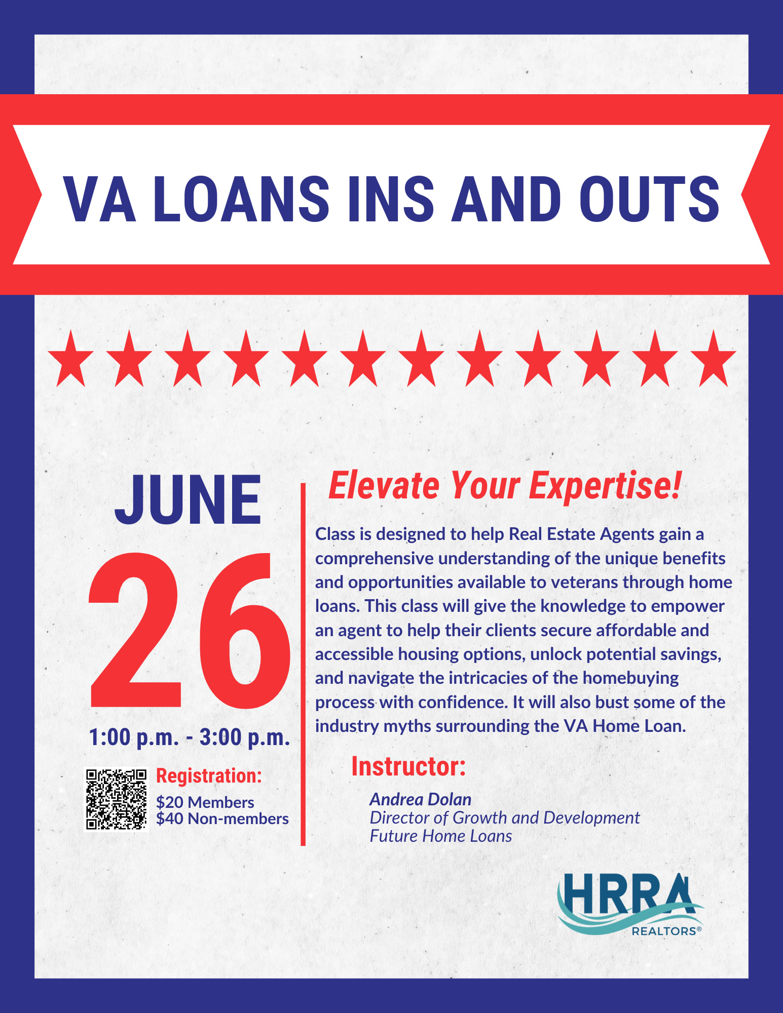 Class is designed to help Real Estate Agents gain a comprehensive understanding of the unique benefits and opportunities available to veterans through home loans. This class will give the knowledge to empower an agent to help their clients secure affordable and accessible housing options, unlock potential savings, and navigate the intricacies of the homebuying process with confidence. It will also bust some of the industry myths surrounding the VA Home Loan.