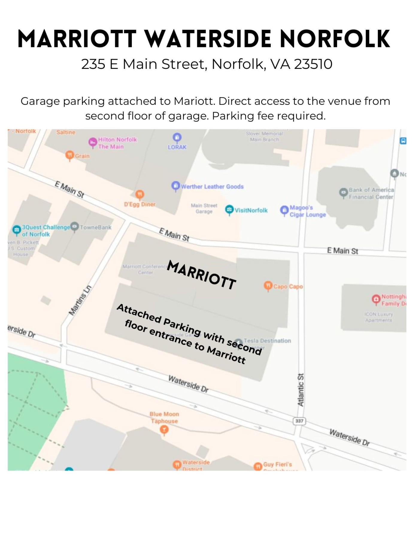Expo & Conference will be held on the Main Floor in the Norfolk Ballroom. Parking Garage attached to Marriott. Credit Card accepted for parking fee.