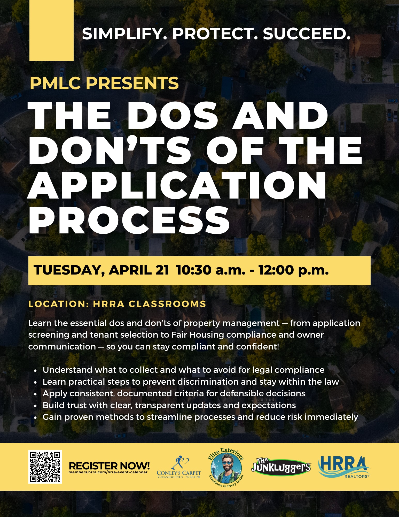 Learn the essential dos and don’ts of property management — from application screening and tenant selection to Fair Housing compliance and owner communication — so you can stay compliant and confident! Understand what to collect and what to avoid for legal compliance Learn practical steps to prevent discrimination and stay within the law Apply consistent, documented criteria for defensible decisions Build trust with clear, transparent updates and expectations Gain proven methods to streamline processes and reduce risk immediatelyImages